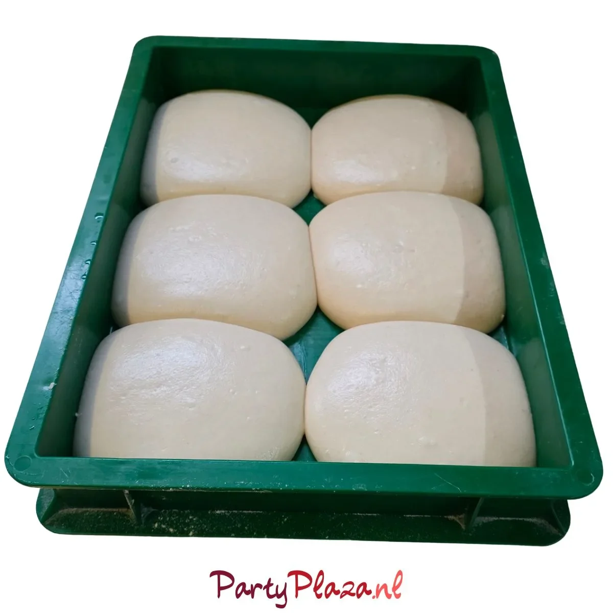 In deze deegkratten passen 6 deegbollen van max. 250 gram per stuk. De kratten zijn onderling stapelbaar, ook met een deksel erop of ertussen.
